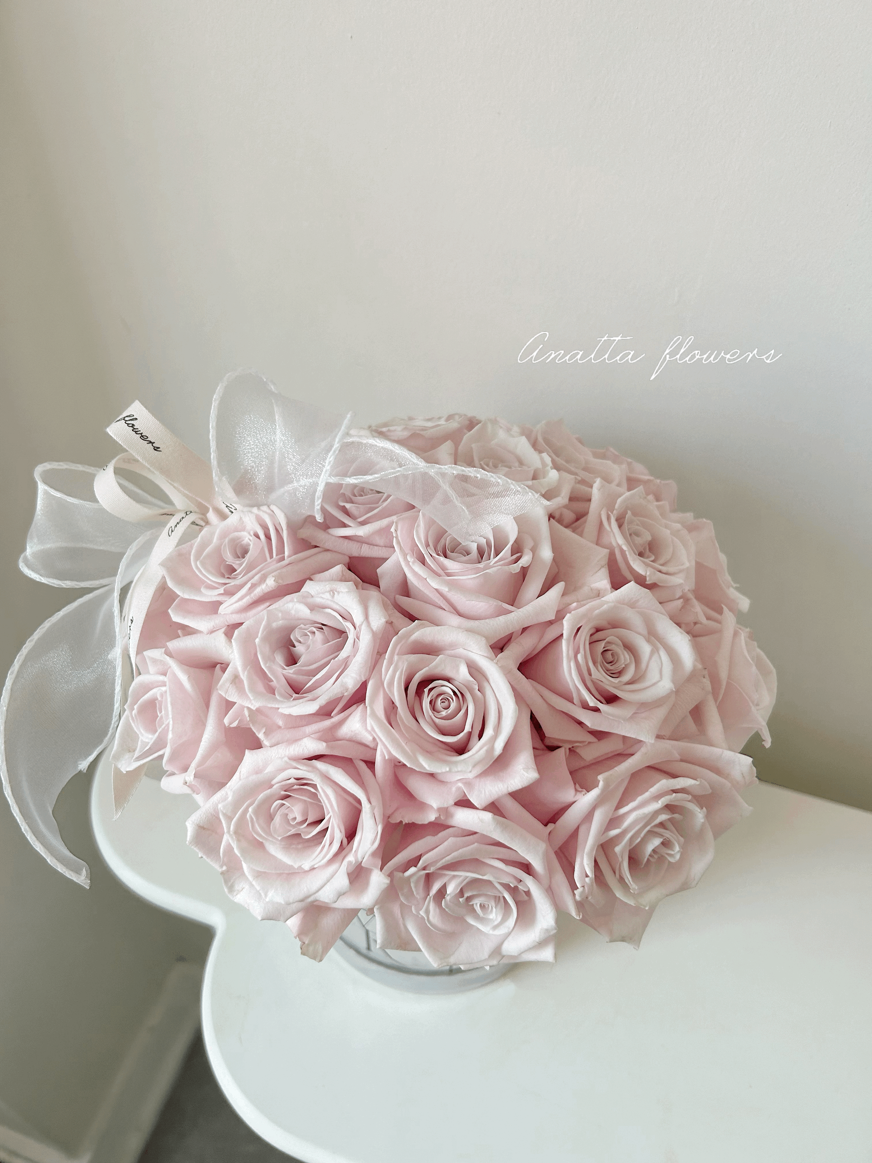For all flower bouquets, take off wrapping after you receive the flowers and put them in water. Change water daily and sanitize the vase to make the flowers last longer. Make sure you put the flowers somewhere cool and well-ventilated because heat will shorten the life of flowers. If you need more detailed care tips you can email us at info@anattaflowers.com