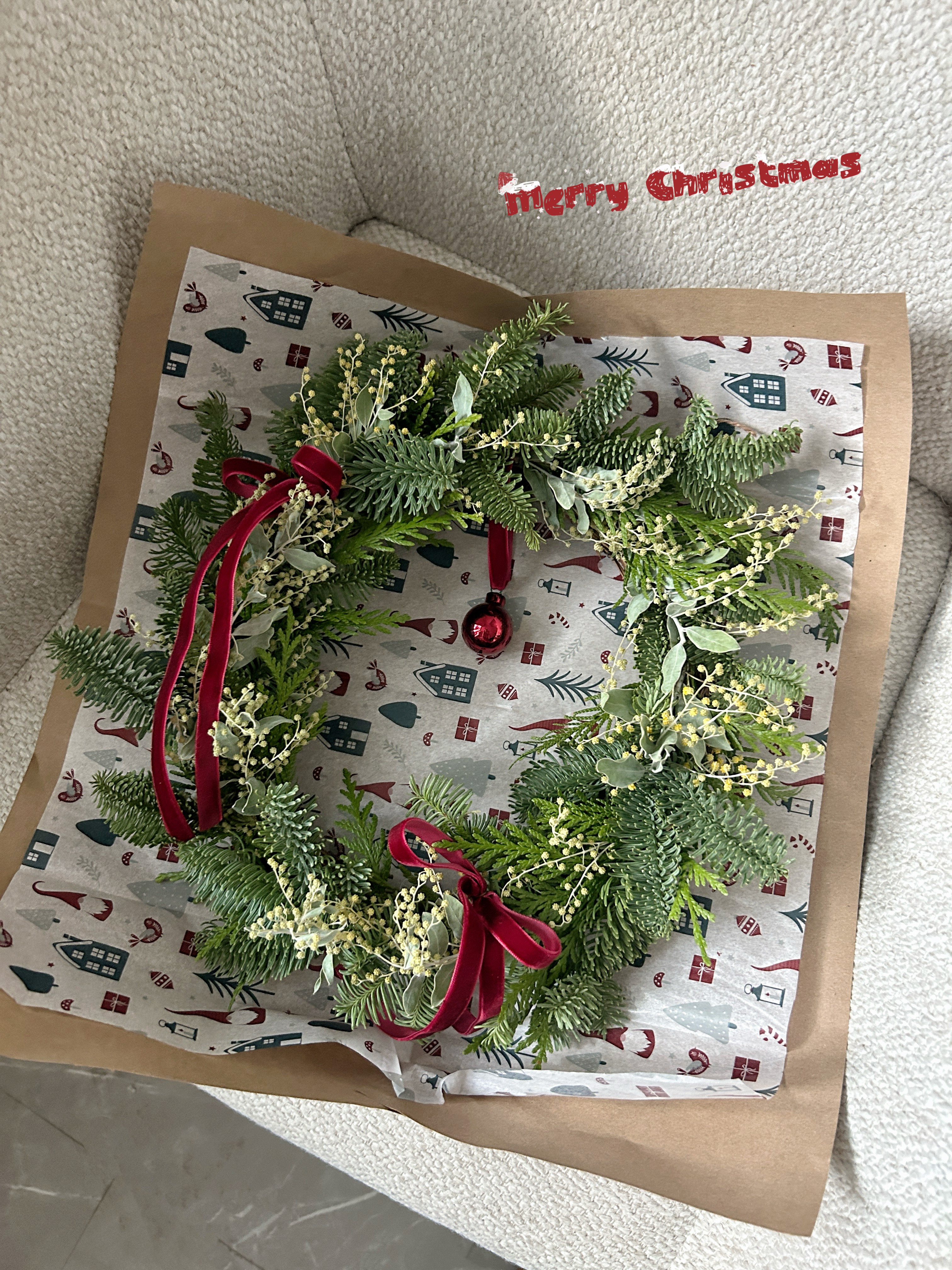 诺贝松纯手工圣诞花环,质感自然,色调安静。