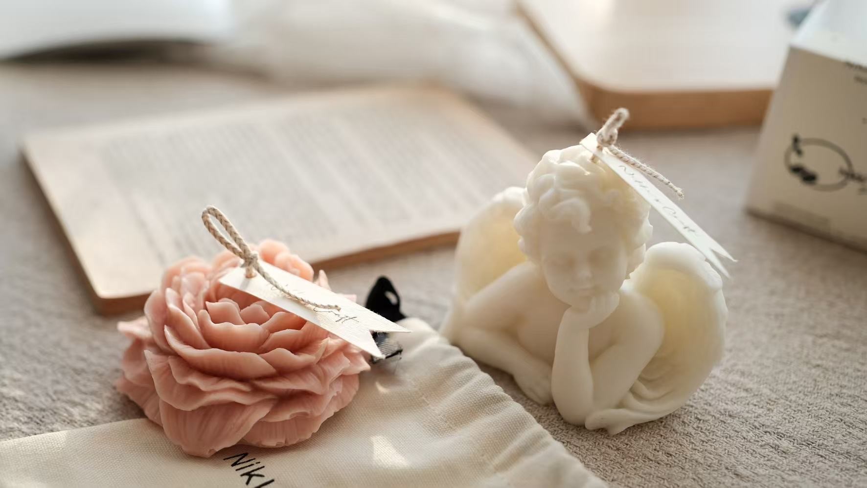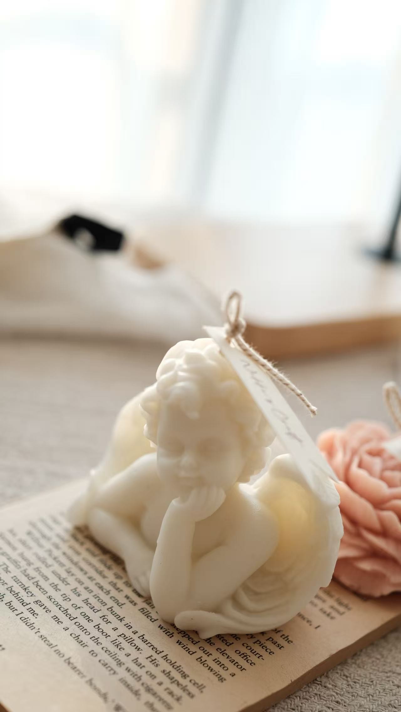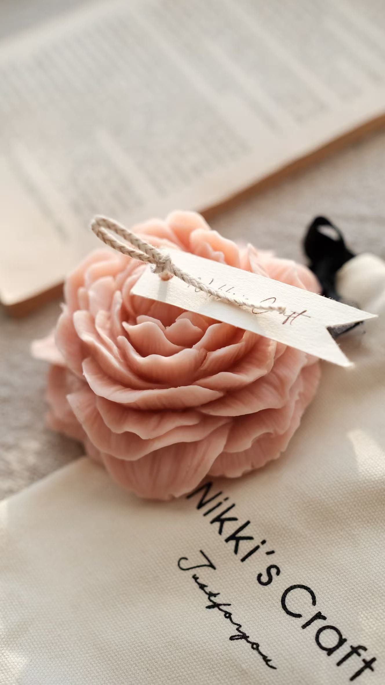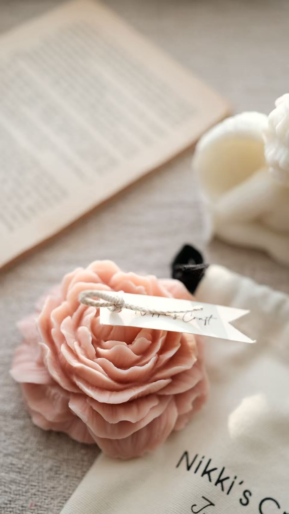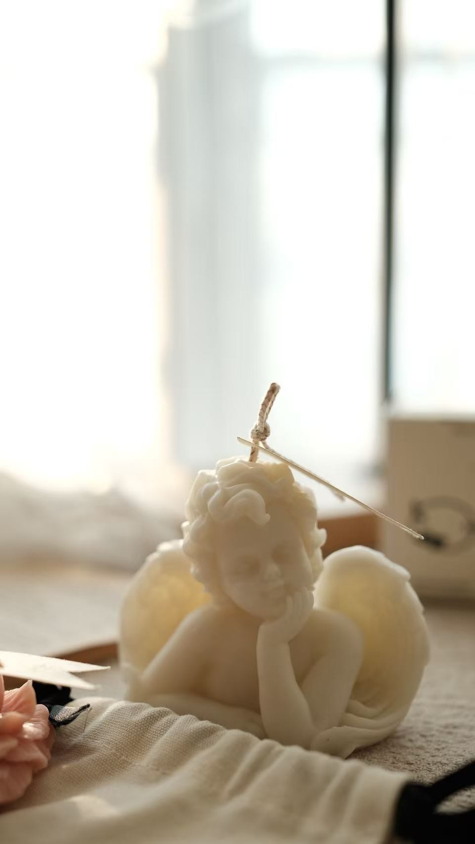 由迪拜受训工坊手工浇注:一支花瓣分明的芍药造型蜡烛,一尊雕塑感天使蜡烛。两者以天然大豆蜡制成,表面细腻,香味低调,不张扬。
