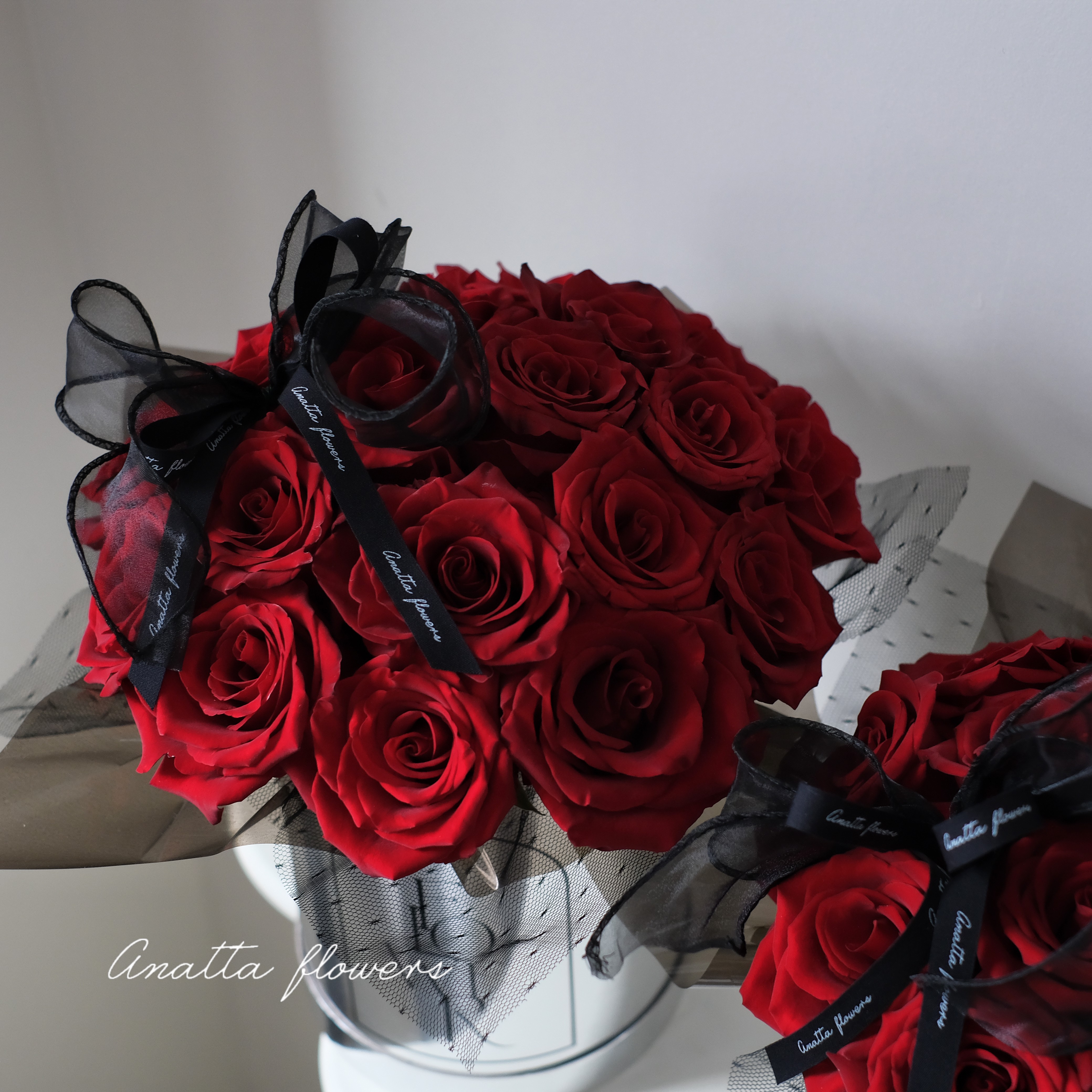A clean and modern rose box arrangement made with fresh red roses. Designed for gifting, celebrations, and special occasions. Available in two sizes.